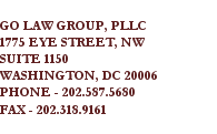 GO Law Group, PLLC. 1775 Eye Street, NW, Suite 1150, Washington, DC 20006 Phone - 202-587-5680; Fax - 202-318-9161